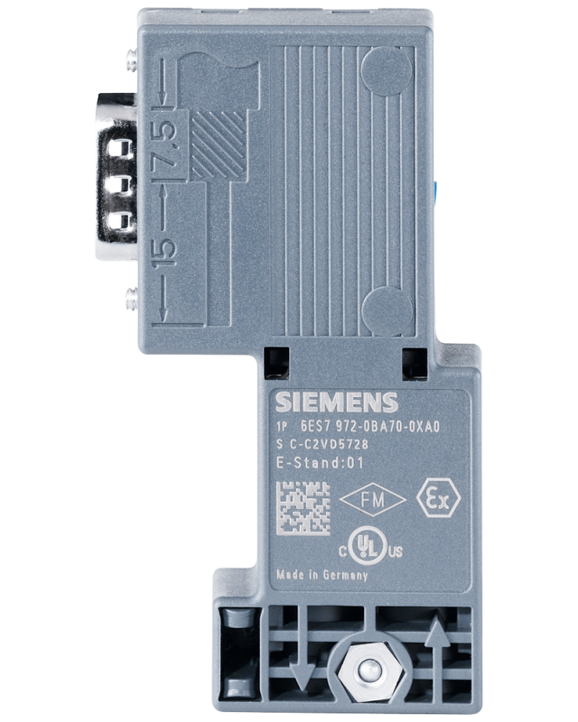 6ES7972-0BA70-0XA0 | SIMATIC DP, BUS CONNECTOR FOR PROFIBUS UP TO 12 MBIT/S 90 DEGREE ANGLE CABLE OUTLET, 15.8 X 72.2 X 36.4 MM (WXHXD), IPCD TECHOLOGY FAST CONNECT, WITHOUT PG SOCKET