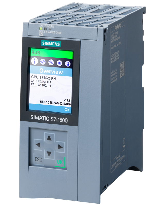 6ES7515-2AM02-0AB0 | SIMATIC S7-1500, CPU 1515-2 PN, CENTRAL PROCESSING UNIT WITH WORKING MEMORY 500 KB FOR PROGRAM AND 3 MB FOR DATA, 1. INTERFACE, PROFINET IRT WITH 2 PORT SWITCH, 2. INTERFACE, ETHERNET, 30 NS BIT-PERFORMANCE, SIMATIC MEMORY CARD NECESSARY