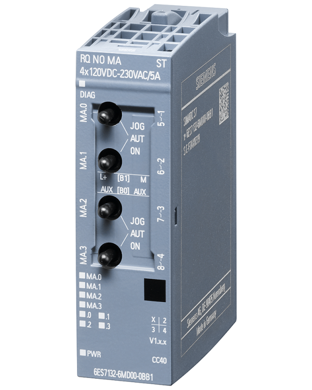 6ES7132-6MD00-0BB1 | SIMATIC ET 200SP, RELAY MODULE NORMALLY OPEN, RQ NO-MA4X120VDC..230VAC/5A ST, WITH MANUAL ACTUATION, PACKAGING UNIT PU 1 FITS TO BU-TYPE B0 OR B1, MODULE DIAGNOSIS