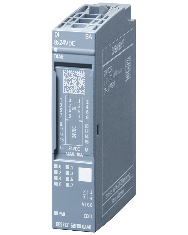 6ES7131-6BF01-0AA0 | SIMATIC ET 200SP, DIGITAL INPUT MODULE, DI 8X24VDC BASIC, PACKING UNIT: 1 PIECE, FITS TO BU-TYPE A0, COLOR CODE CC01, MODULE DIAGNOSIS