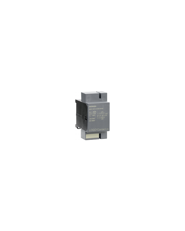 LOGO! contact 24 Switching module for direct switching of resistive loads up to 20 A and motors up to 4 kW, 24 V DC, 3 NO contacts+1 NC EAN: 4025515050742