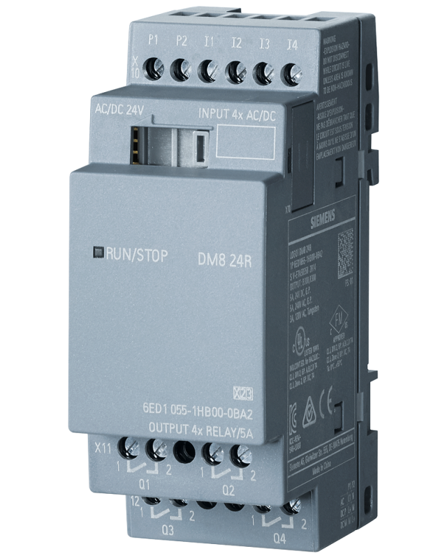 LOGO! DM8 24R expansion module, PS/I/O: 24V/24V/relay, 2 MW 4 DI/4 DO, AC/DC/NPN input for LOGO! 8