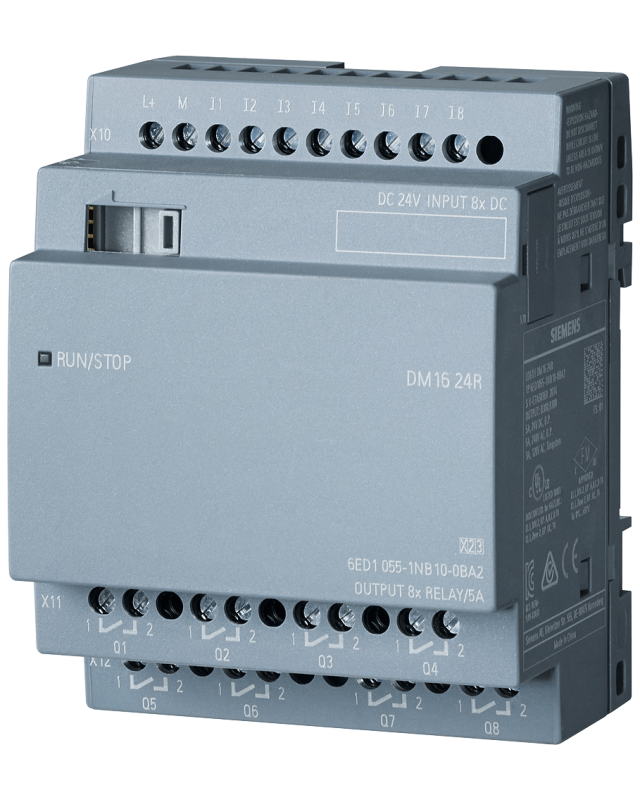 LOGO! DM16 24R expansion module, PS/I/O: 24 V DC/24 V DC/relay, 8 DI/8 DO, 4 MW for LOGO! 8
