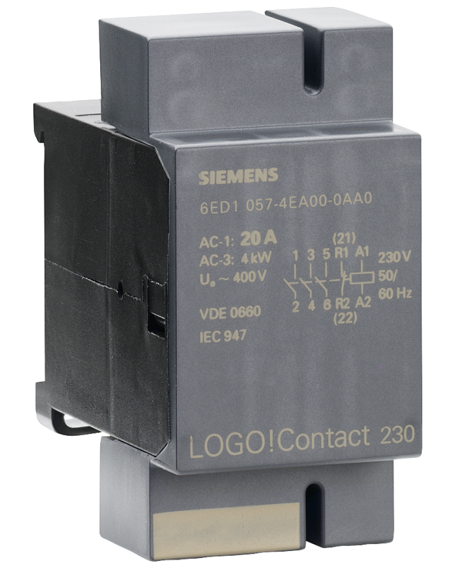LOGO! contact 230 Switching module for direct switching of resistive loads up to 20 A and motors up to 4 kW, 230 V AC, 3 NO contacts+1 NC EAN: 4025515050759